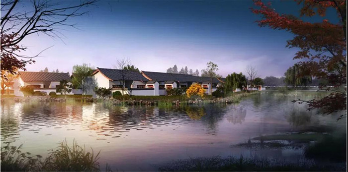 以自然岸线为主,构建白墙,灰瓦,绿树的水乡视觉景观。
