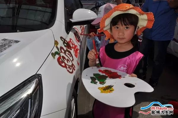 5月1日上午,共有三十多组家庭前来参加车博会儿童汽车涂鸦比赛。