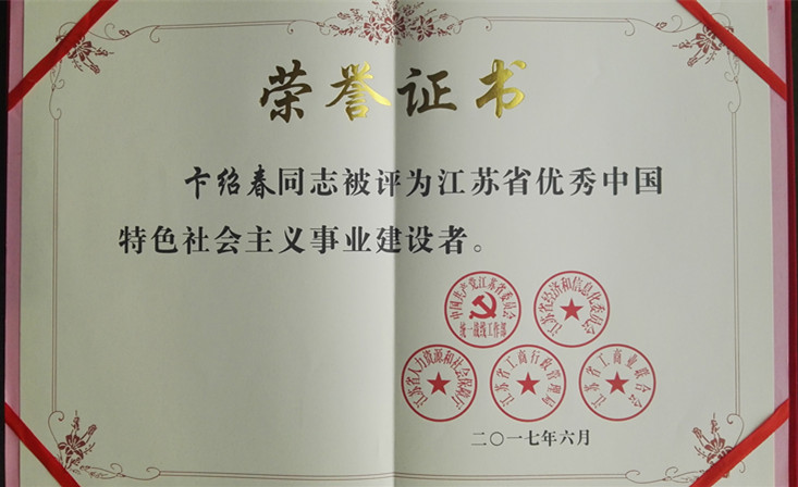 卞绍春董事长荣获“江苏省优秀中国特色社会主义事业建设者”称号