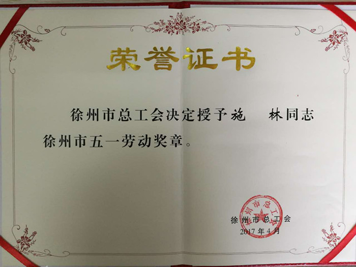 徐州市总工会授予施林同志徐州市五一劳动奖章