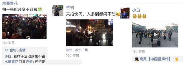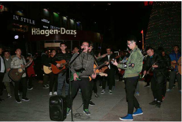 同时间,繁华热闹的市中心徐州苏宁广场、金鹰购物中心、彭城广场等地也出现了经典、年代感十足的声音,《光辉岁月》吉他弹奏乐队,留住过往来人群的脚步;一群年轻帅气的小伙,配上经典的音乐,在这个圣诞前夕,繁华的灯光下,那感觉经典难忘。