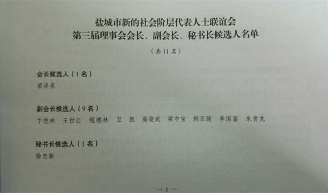 卞恺林同志当选盐城市新的社会阶层代表人士联谊会副会长