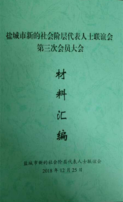 2018年12月25日,盐城市新的社会阶层代表人士联谊会第三次会员大会召开,卞恺林同志当选为副会长。