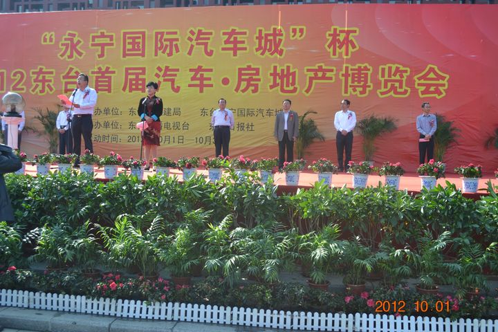10月1日上午,由东台市住建局、东台永宁国际汽车城共同举办的2012“永宁国际汽车城”杯东台首届汽车、房产博览会在东台市市民广场盛大开幕,东台市委常委、常务副市长崔康;东台市委常委黄淑华;东台市城东新区管委会主任徐越;东台市住建局王书记;江苏永宁实业投资集团有限公司董事长卞绍春等领导出席了开幕仪式。