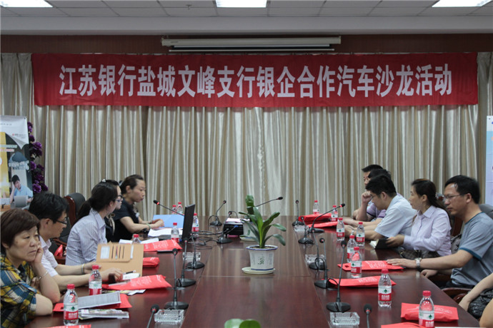 首先由江苏永宁实业投资集团总经理陈亚兵致辞,对江苏银行多年来给予企业的大力支持表示衷心的感谢,希望银企双方进一步密切合作,增进友谊,互信互助,实现银企共赢。其后,在热烈的气氛中,银企双方围绕“银企合作、汽车分期”进行了良好的交流和沟通,初步达成多项合作意向。最后,江苏银行盐城分行张建军行长致辞,感谢各大汽车经销商在百忙中参加今天的活动,表示今后将继续加大对汽车经销企业的信贷支持力度,促进企业更好地发展。同时将积极探索银企合作新模式,开创银企合作新局面。