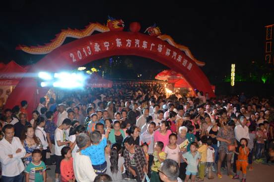 9月19-20日,阜宁第五届中秋国庆灯会的现场,白天鹅公园里灯如海、人如潮,每一座灯组前都聚集着大量的游客,前来领略这灯景交融、璀璨艳丽的花灯世界。与往届不同的是,今年吸引群众聚集的除了灯会,由“永宁·东方汽车广场”冠名主办的汽车县市巡展,当天也在阜宁白天鹅公园举办,有了本次车展的助阵,使得现场人气爆满。