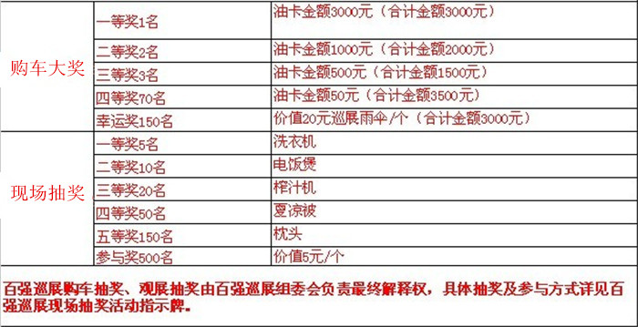 据百强巡展组委会负责人介绍,汽车厂家联合百强巡展推出的厂家优惠非常难得,每个经销商也都拿出了优惠促销措施,或让利、或送礼物、或送服务。